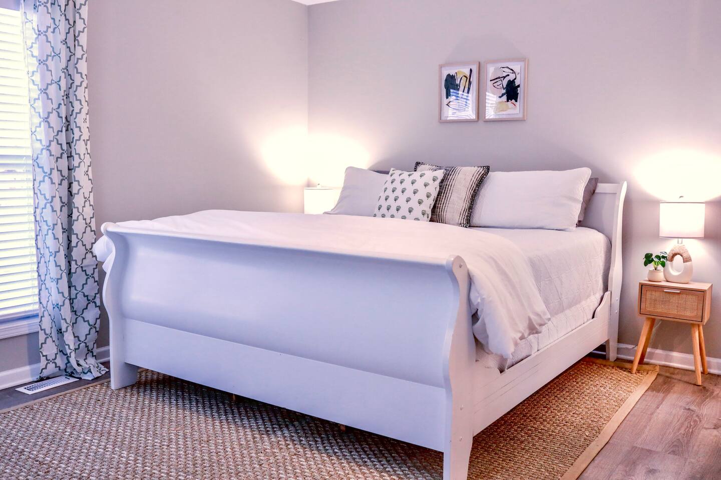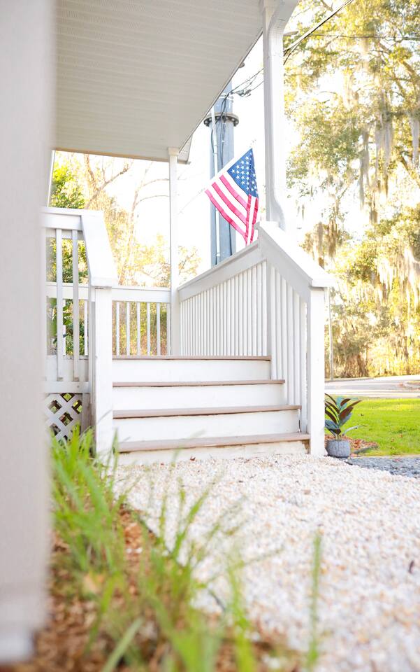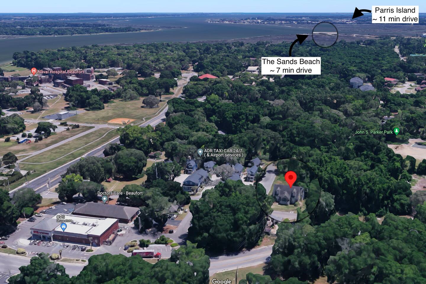 Upon entering, you'll be greeted by a cozy living room that seamlessly connects to a fully equipped kitchen, complete with modern appliances and ample counter space. The open layout creates a warm and inviting atmosphere, perfect for socializing and spending quality time together. The 5 bedrooms are tastefully decorated, each featuring comfortable beds ensuring a good night's sleep after a day of exploring the nearby attractions. The two bathrooms are conveniently located, one on each floor to serve all guests, equipped with amenities and fresh towels. The back porch provides a place to unwind and soak in the pleasant coastal weather while enjoying the barbecue grill. The home's central location provides easy access to all the activities in Beaufort and Port Royal. Whether you're interested in exploring the many historic sites, enjoying waterfront dining, or experiencing the vibrant local culture, you're a short drive away. Additionally, being within a 10-minute drive of both Parris Island and downtown Beaufort, our home is an excellent choice for families attending graduation ceremonies or exploring the charming streets of Beaufort.